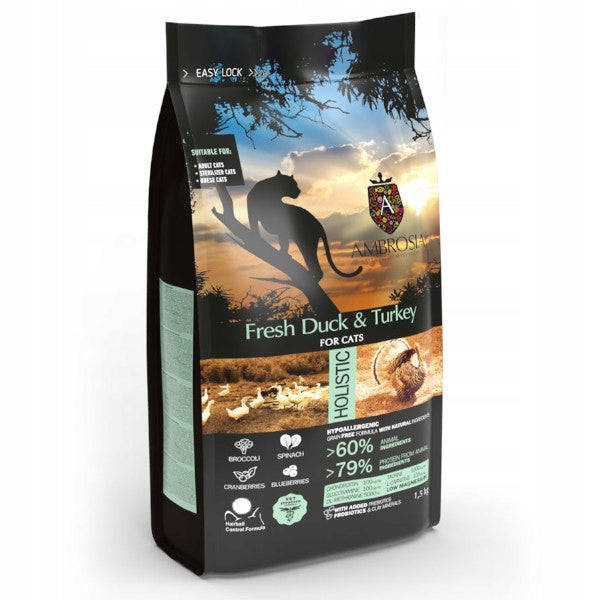 AMBROSIA Light Świeża kaczka i indyk 5kg dla kotów dorosłych, seniorów, kotów sterylizowanych i z nadwagą