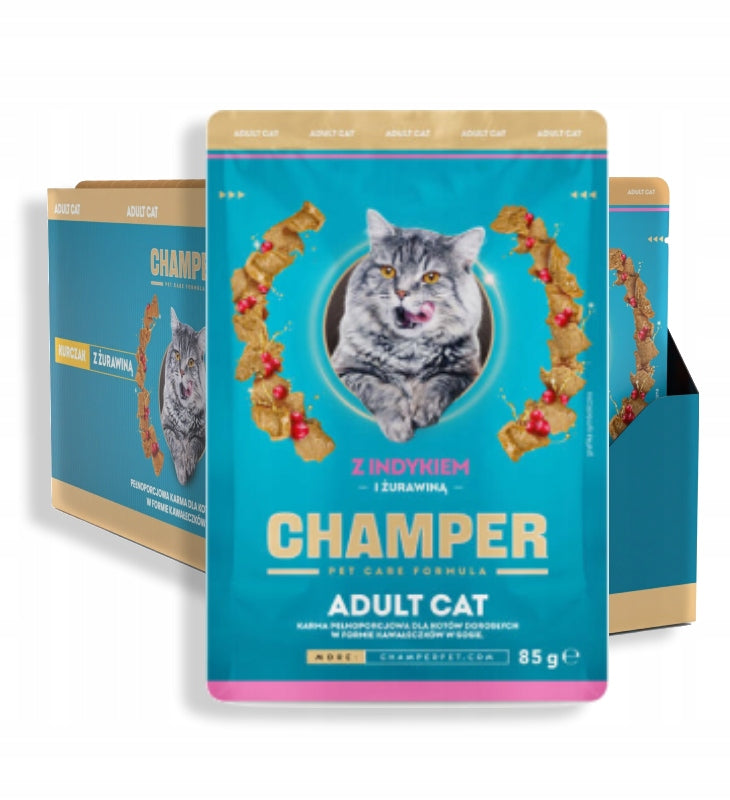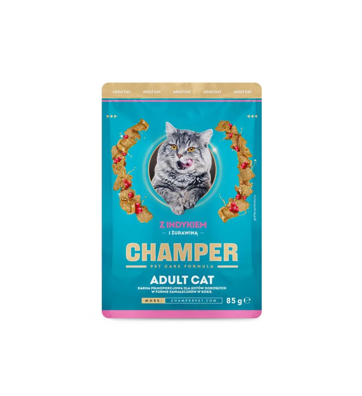 CHAMPER Indyk i żurawina w sosie – funkcjonalne dodatki dla zdrowia i witalności kota