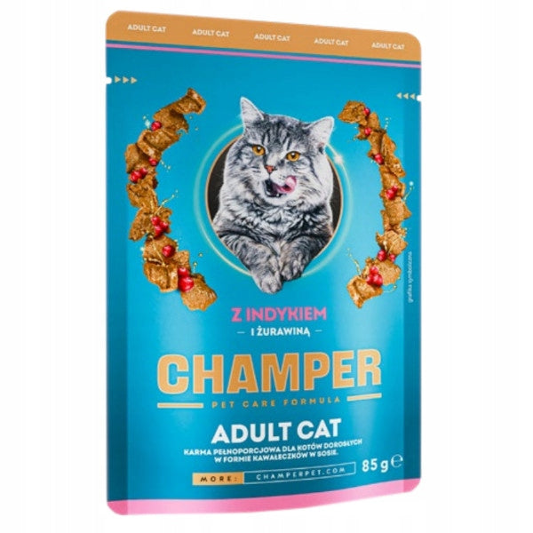 CHAMPER Indyk i żurawina w sosie 85g karma mokra dla kotów dorosłych