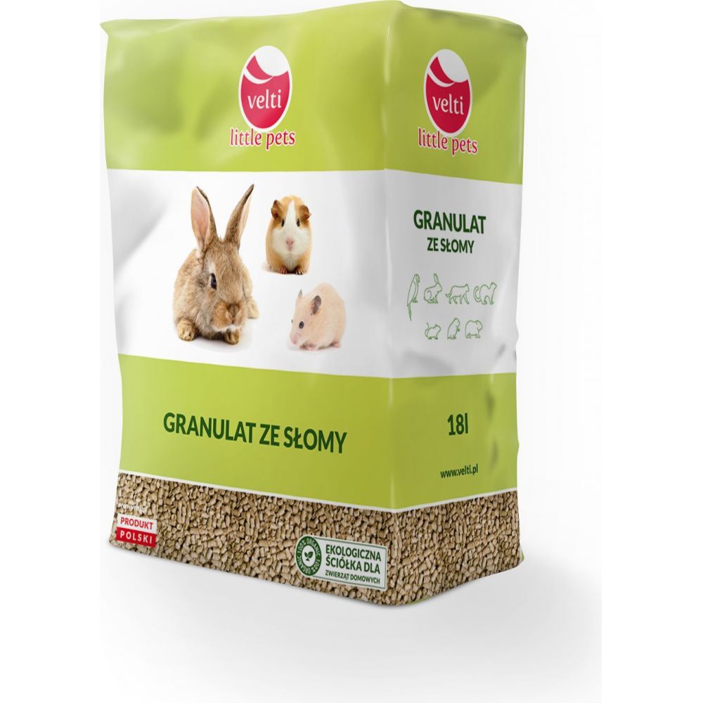 Podłoże ze 100% słomy w postaci granulatu to idealne rozwiązanie dla małych zwierząt.
