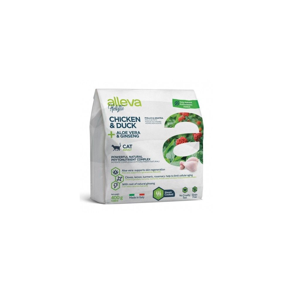 Alleva Holistic Sucha Karma Dla Dorosłych Kotów Z Kurczakiem I Kaczką Z Dodatkiem Aloesu I Korzenia Żeń-szenia 400 g