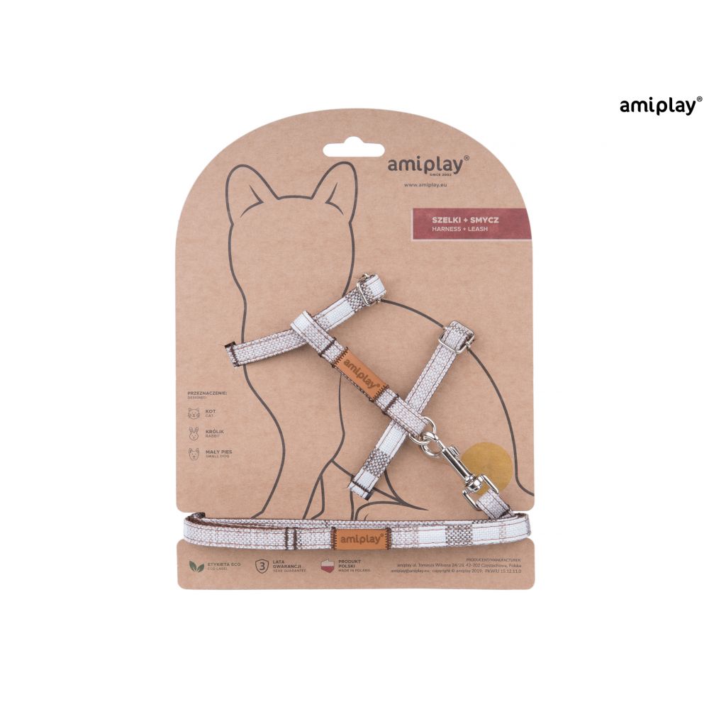 Amiplay London Szelki + Smycz Dla Kota Rozmiar M Brązowe