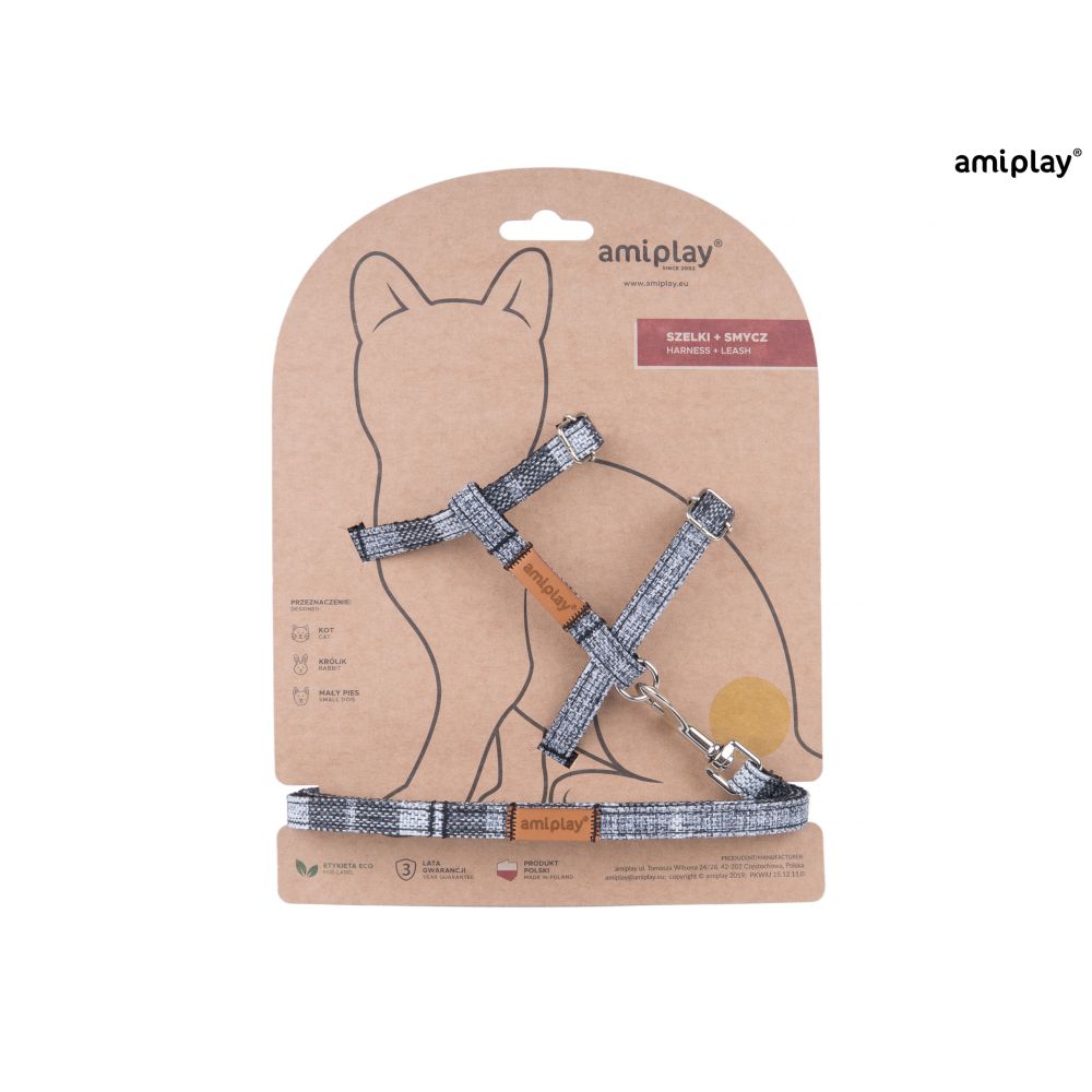 Amiplay London Szelki + Smycz Dla Kota Rozmiar S Szare