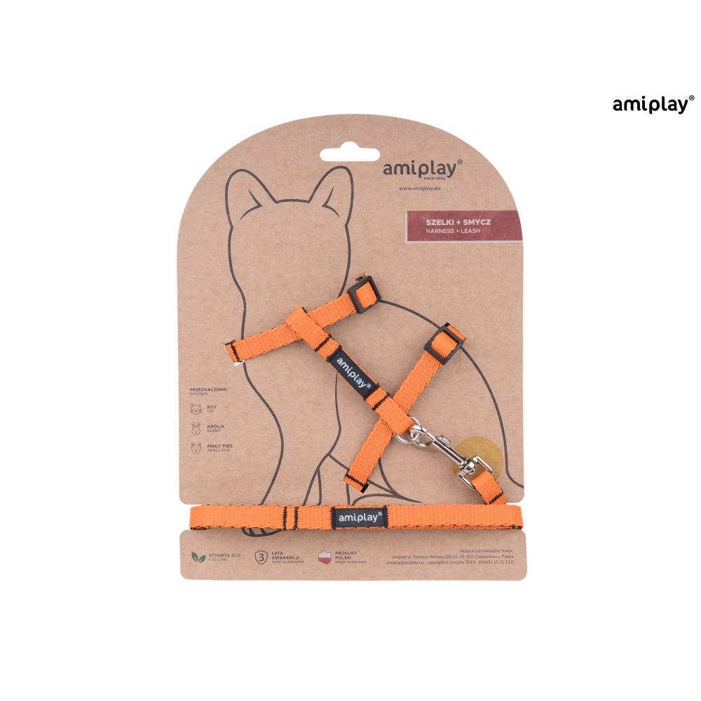 Amiplay Twist Szelki + Smycz Dla Kota Rozmiar S Pomarańczowe