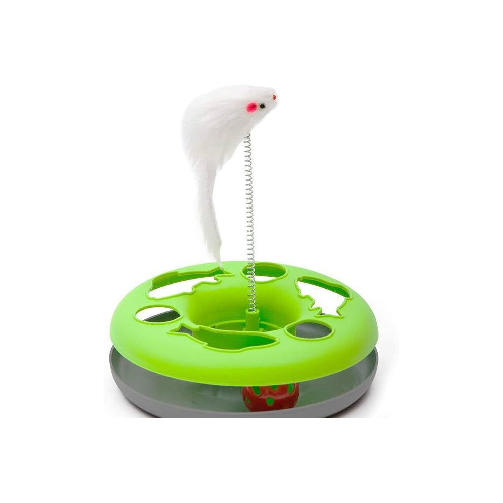 Wzdłuż toru toczy się piłeczka, w której wnętrzu znajduje się dzwoneczek - jego dźwięk przyciągnie do zabawy każdego kota. Kot może cały czas łapać kulkę przez otwory w obudowie toru. W środku zabawki, na metalowej sprężynce, huśta się mysz, która jest dodatkową animacją dla kociaka.