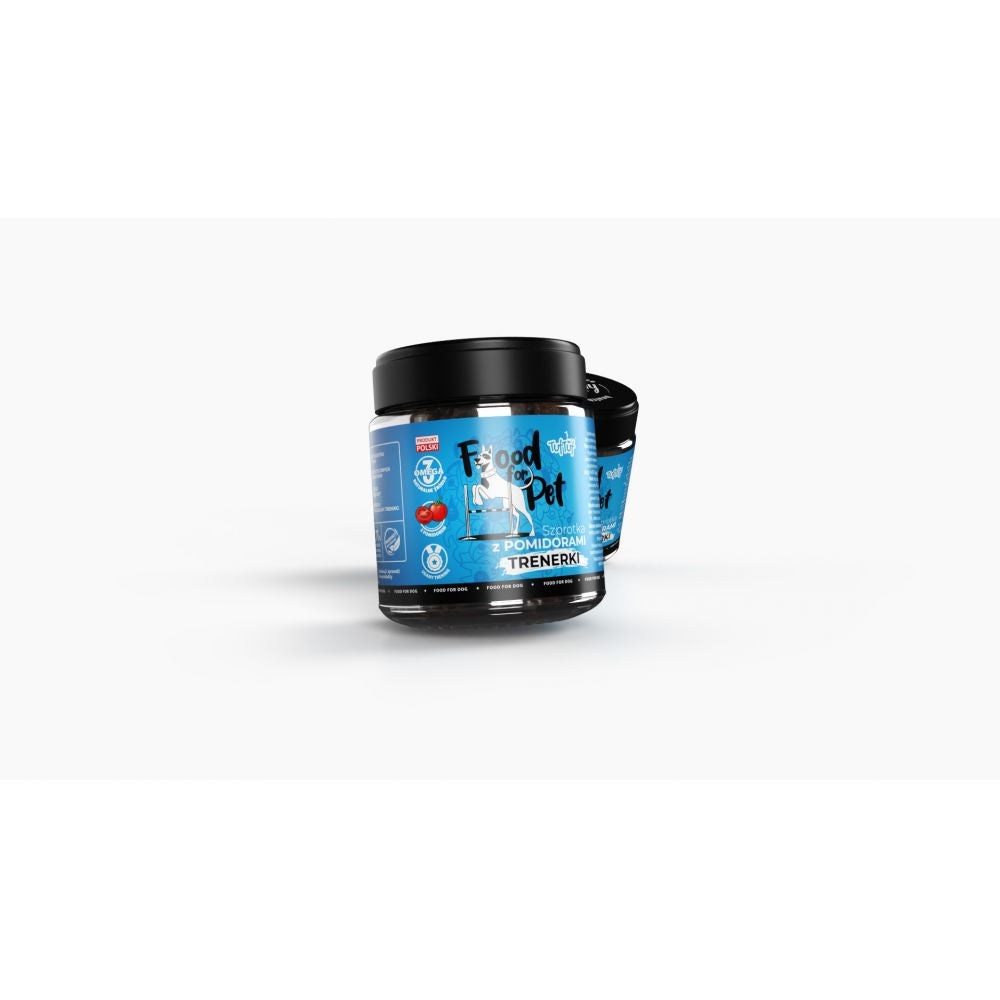 Szkolenie psa nie może obyć się bez nagrody… BA! Bez nagród! W słoiku TufTuf znajdziesz kąski w ilości wystarczającej na kilka sesji treningowych. Podpowiadamy jednak – nie ograniczaj się w podawania psu nagród. Pozytywne szkolenie, pełne wyśmienitych kąsków to lekcja wypełniona psią radością i efektywną nauką. Zdrowo, praktycznie i pysznie! Ryba i pomidory powodują, że trenerki stanowią źródło kwasów omega -3 oraz witamin.