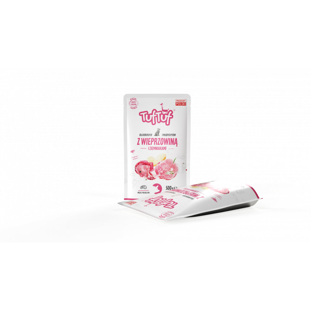 Bult TufTuf Mielonka Dla Młodych i Dorosłych Psów Z Wieprzowiną i Ziemniakiem 500 g