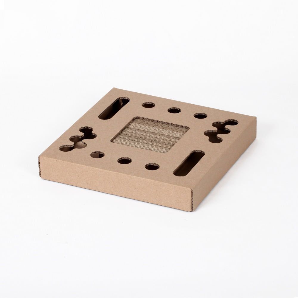 Carton+pets zabawka i drapak dla kota TOBBY to miejsce zabawy składające się z tunelu w którym znajdują się drewniane kulki oraz drapak.