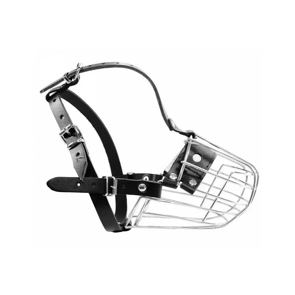 Kaganiec metalowy dla psa rasy Spaniel duży. Wykonany z wysokiej jakości materiałów. Chromowany metalowy kosz oraz skórzane elementy. Część górna, nosowa podszyta filcem.