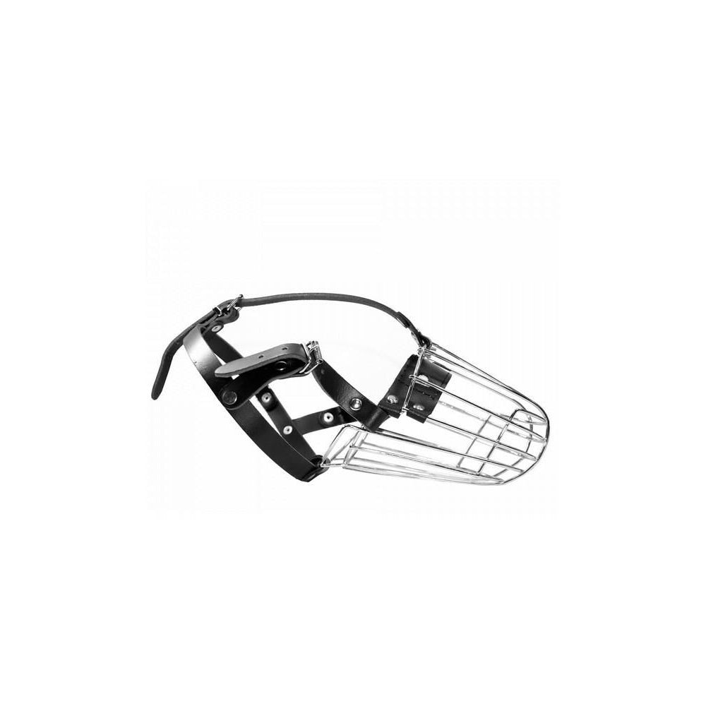 Kaganiec metalowy dla psa rasy Collie. Wykonany z wysokiej jakości materiałów. Chromowany metalowy kosz oraz skórzane elementy. Część górna, nosowa podszyta filcem.