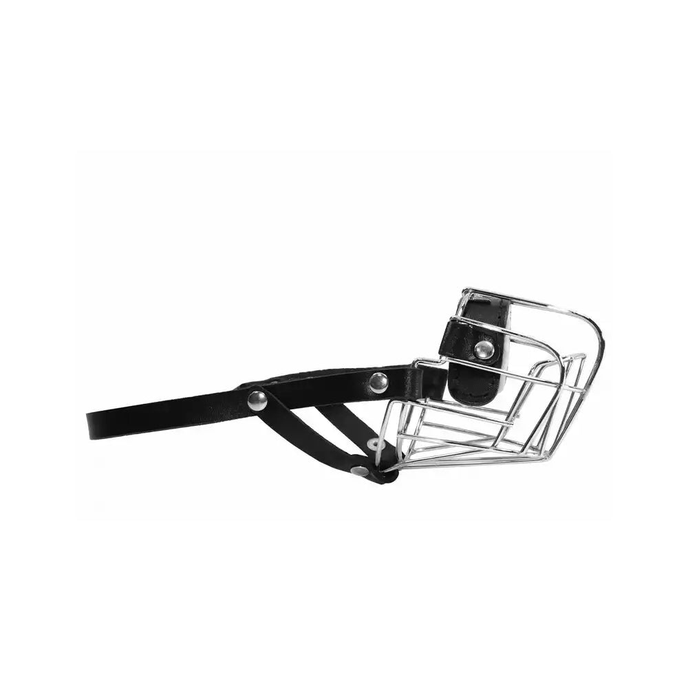 Kaganiec metalowy dla psa rasy pudel średni. Wykonany z wysokiej jakości materiałów. Chromowany metalowy kosz oraz skórzane elementy. Część górna, nosowa podszyta filcem.