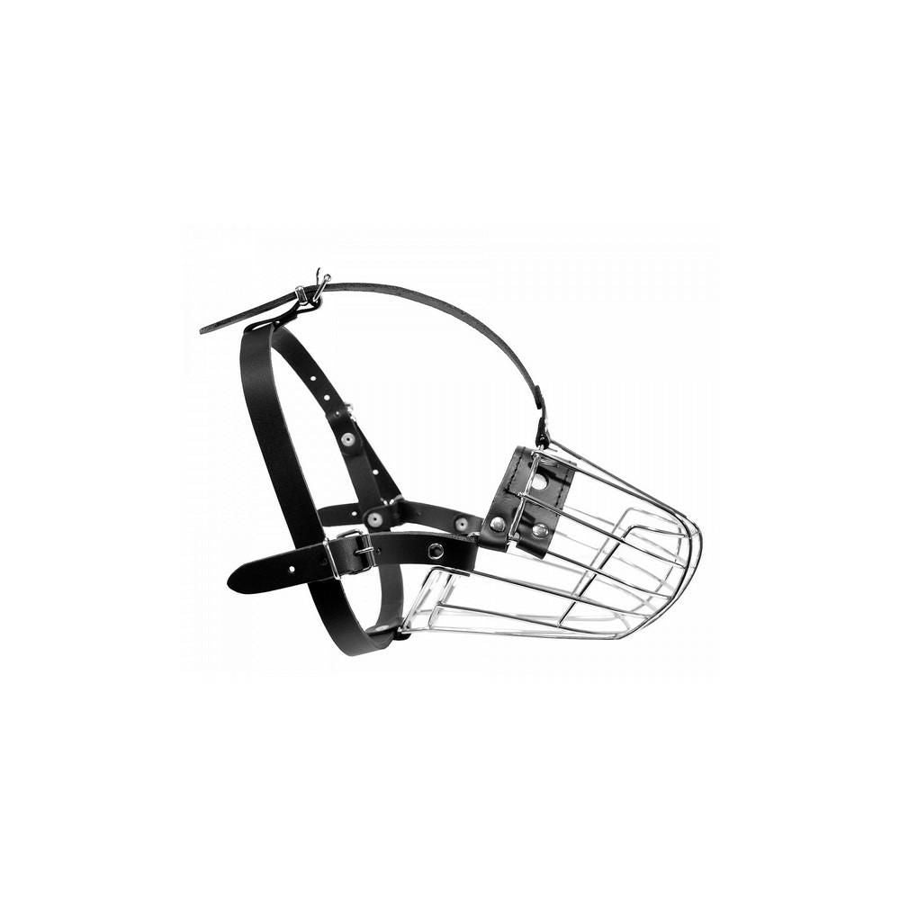 Kaganiec metalowy dla psa rasy Owczarek suka. Wykonany z wysokiej jakości materiałów. Chromowany metalowy kosz oraz skórzane elementy. Część górna, nosowa podszyta filcem.