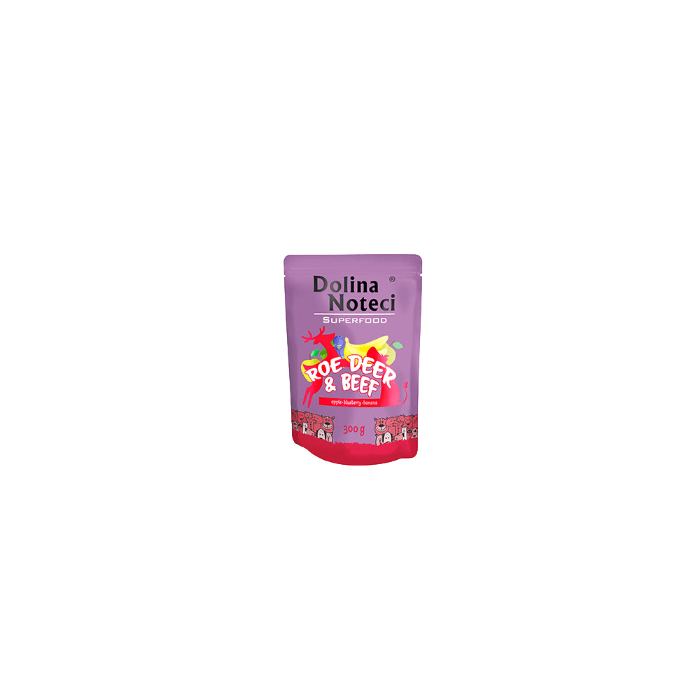 sarna 40% (mięso), wołowina 40% (płuca, wątroba, serca, mięso 4%, żołądki), rosół, borówka amerykańska 2%, żurawina 1,5%, substancje mineralne, banan 1%, jabłko 0,5%, drożdże piwne suszone 0,3% (źródło prebiotyków: mannanooligosacharydów i B-glukanów), siemię Iniane 0,1%, nasiona babki płesznik, jukka Mojave, wodorosty morskie, omułek nowozelandzki zielonowargowy 0,02%, glukozamina 0,02%, siarczan chondroityny 0,02%.