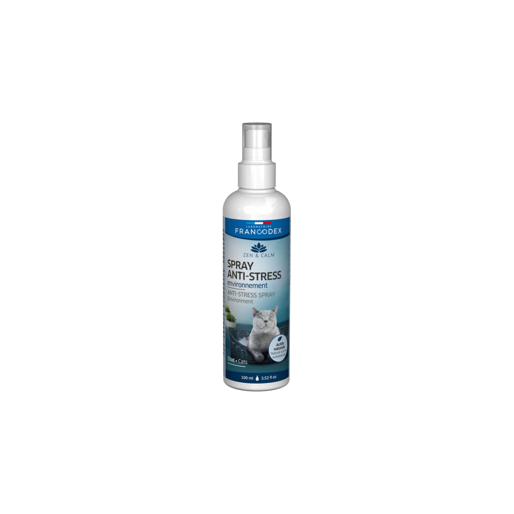 Spray antystresowy dla kociąt i kotów Francodex pomaga stworzyć bezpieczne otoczenie zwierzętom lękliwym, nerwowym, mającym trudności z zaadaptowaniem się w nowym miejscu. Zawarte w produkcie wyciągi z roślin o właściwościach uspokajających (waleriana, kocimiętka) korzystnie wpłyną na samopoczucie zwierzęcia i pomogą uniknąć niepożądanych zachowań wywołanych przez stres (np. niszczenie mebli, znakowanie moczem). Wygodna forma aerozolu do rozpylania w otoczeniu.