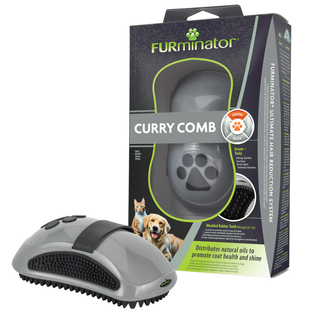 Zgrzebło Furminator Curry Comb pomaga zachować zdrową, błyszczącą i gładką sierść zwierzęcia, rozprowadzając naturalne natłuszczenie po skórze i sierści.