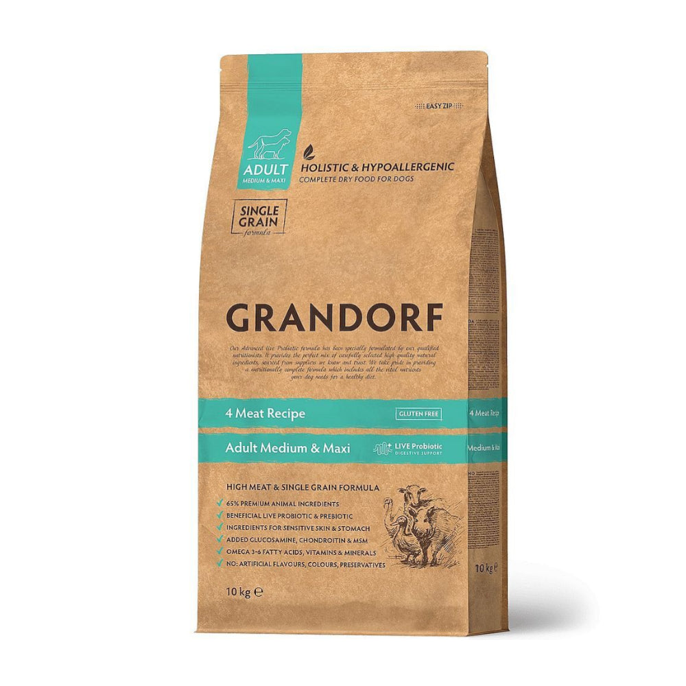 Grandorf 4 Meat Adult Medium Maxi Sucha Karma Dla Dorosłych Psów Średnich i Dużych Ras o Smaku 4 Mięs 10 kg