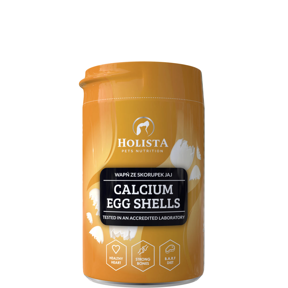 Wapń ze skorupek jaj marki Holista to organiczny suplement wapniowy w postaci mączki ze sterylizowanych skorupek jaj kurzych. Stanowi niezbędne uzupełnienie diety psów i kotów karmionych surowym bądź gotowanym mięsem. Skorupki z jaj świetnie nadają się do równoważenia nadmiaru fosforu w modelu żywienia dietą BARF, podczas ograniczenia podaży kości. Produkt jest wolny od syntetycznych dodatków, antyzbrylaczy oraz barwników.