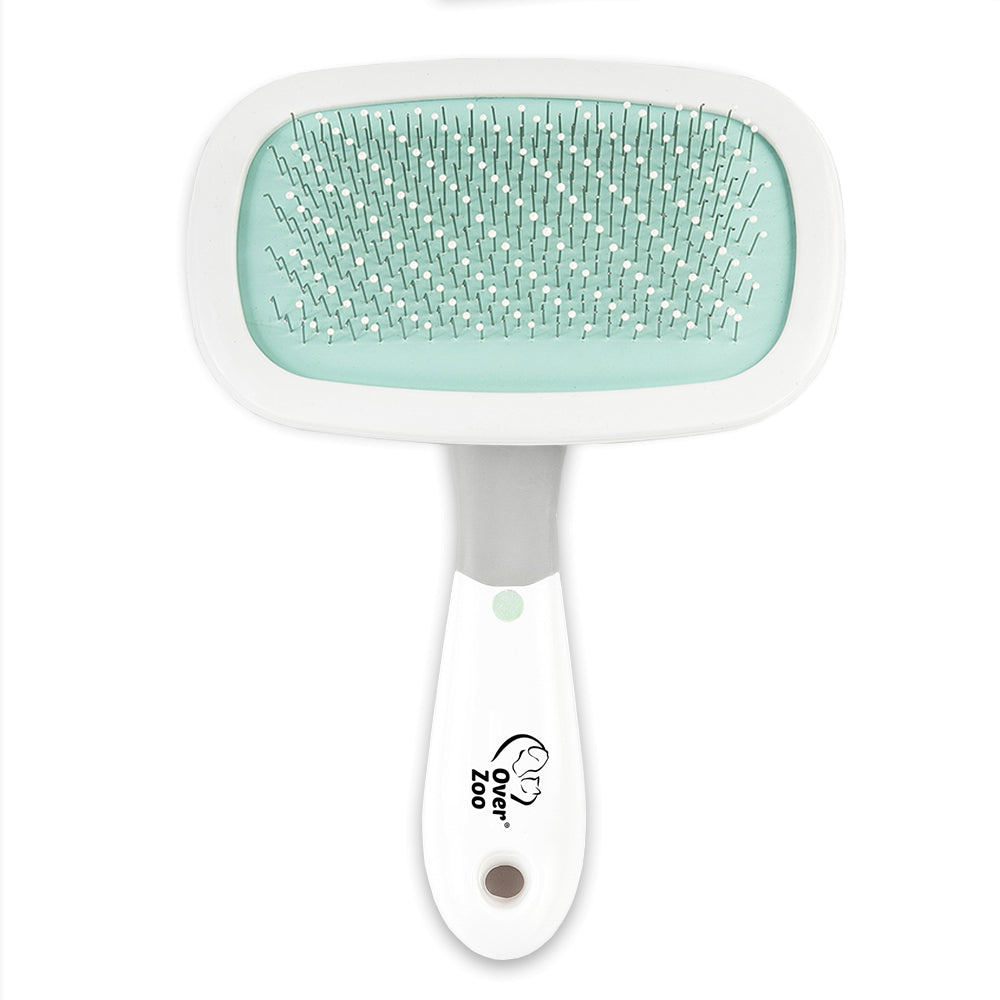 Over Zoo Szczotka obrotowa z kulkami M Obracana głowica 360° zapewnia komfort i wygodę użytkowania. Dzięki stalowym, lekko wygiętym igłom doskonale sprawdzi się do rozczesywania splątanej sierści, kołtunów oraz wyczesywania martwego podszerstka. Miękka poduszka amortyzuje nacisk dzięki czemu szczotka lepiej rozczesuje włos i nie podrażnia skóry zwierzęcia. Plastikowe kulki na końcach igieł zabezpieczają dodatkowo przed podrażnieniem skóry. Ergonomiczny uchwyt ułatwia użytkowanie.