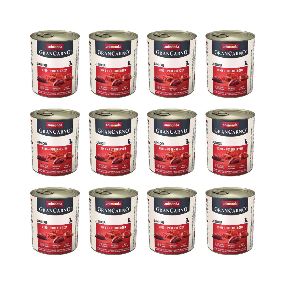Pakiet Animonda GranCarno Wołowina z Sercami Indyczymi Junior 12 x 800 g