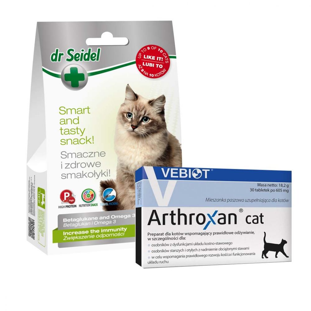 Pakiet Arthroxan Preparat Dla Kotów Dorosłych i Kociąt Wspomagający Prawidłowy Rozwój Kośćca I Funkcjonowanie Układu Ruchu 30 Tabletek + Dr Seidel Smakołyki Zwiększenie Odporności dla Kota 50 g GRATIS!
