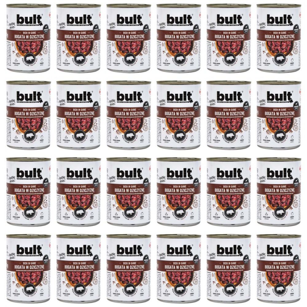 Skład: Mięso i produkty pochodzenia zwierzęcego 75% (w tym: dziczyzna 20% - mięso i podroby; wieprzowina 35% - mięso, żołądki, płuca, przełyk, wątroba, śledziona; wołowina 20% - mięso, tchawica, płuca, ścięgna, wymiona, wątroba), ryż 2%, jabłko 2%, jajko 2%, siemię lniane 0,5%, tymianek 0,2%, bulion naturalny, składniki mineralne