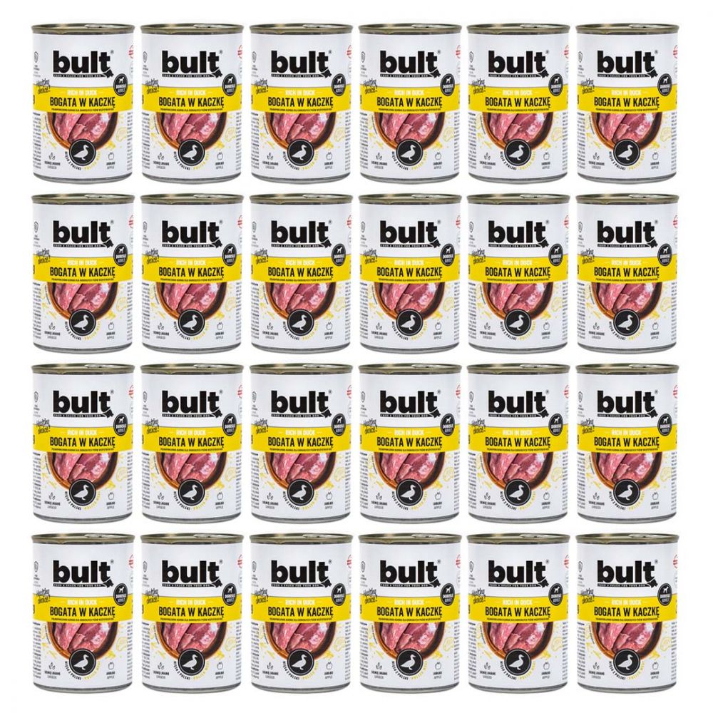 Skład: Mięso i produkty pochodzenia zwierzęcego 75% (w tym: mięso z kaczki 20%; wieprzowina 35% - mięso, żołądki, płuca, przełyk, wątroba, śledziona; wołowina 20% - mięso, tchawica, płuca, ścięgna, wymiona, wątroba), ryż 2%, jabłko 2%, jajko 2%, siemię lniane 0,5%, tymianek 0,2%, bulion naturalny, składniki mineralne