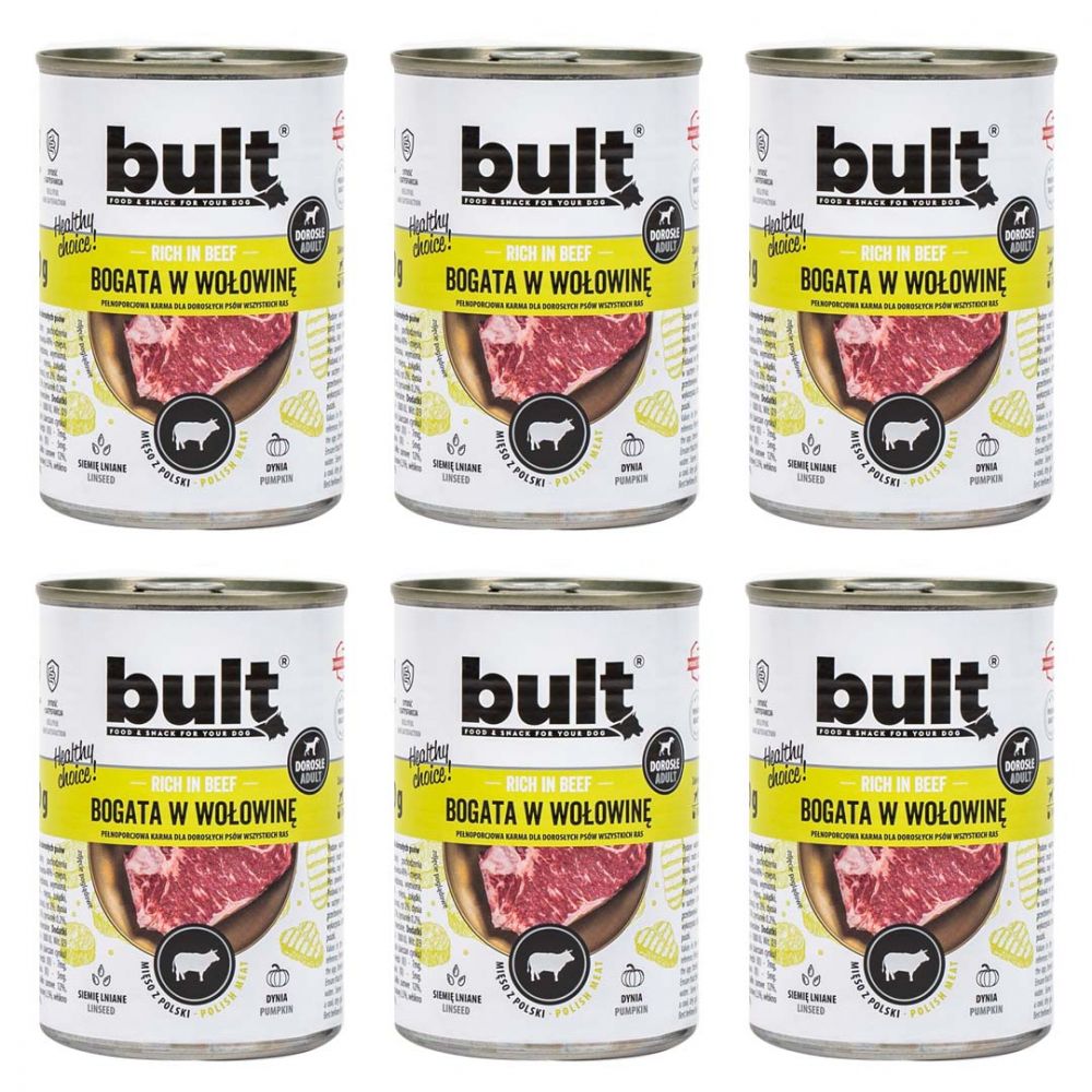 Pakiet Bult Karma Mokra Dla Dorosłych Psów Bogata w Wołowinę 6 x 400 g