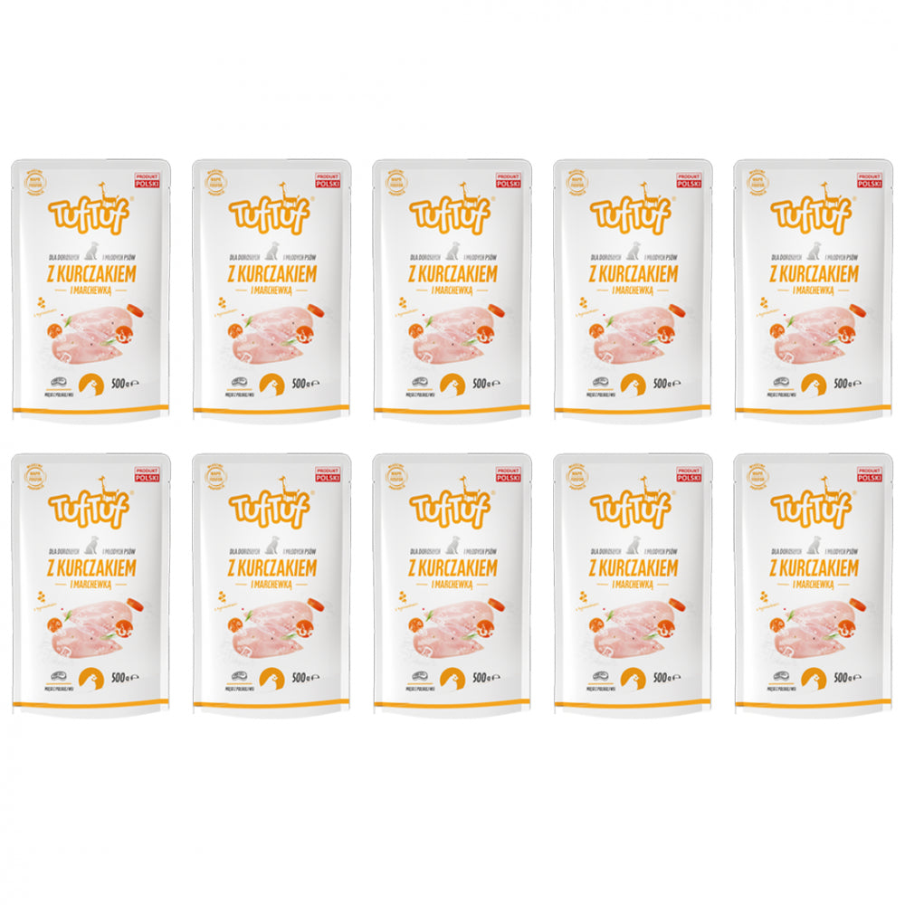 Pakiet Bult TufTuf Mielonka Dla Młodych i Dorosłych Psów Z Kurczakiem i Marchewką 10 x 500 g