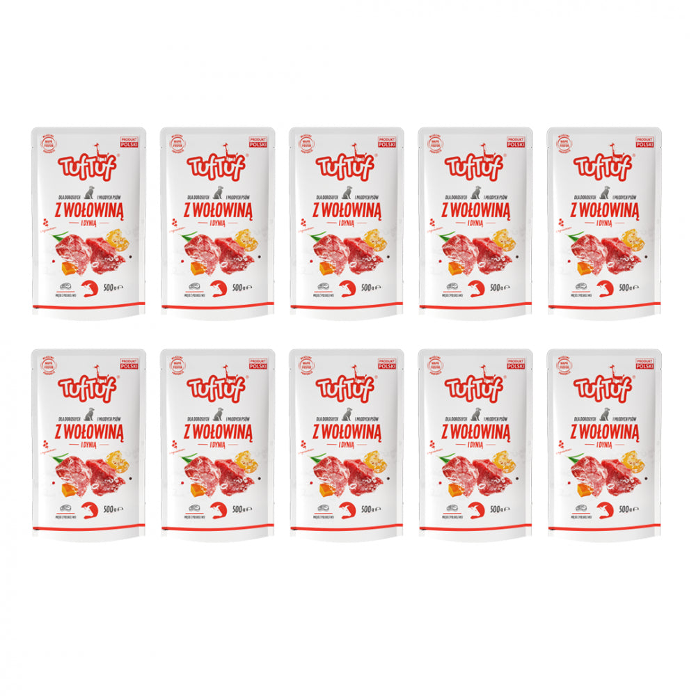Pakiet Bult TufTuf Mielonka Dla Młodych i Dorosłych Psów Z Wołowiną i Dynią 10 x 500 g