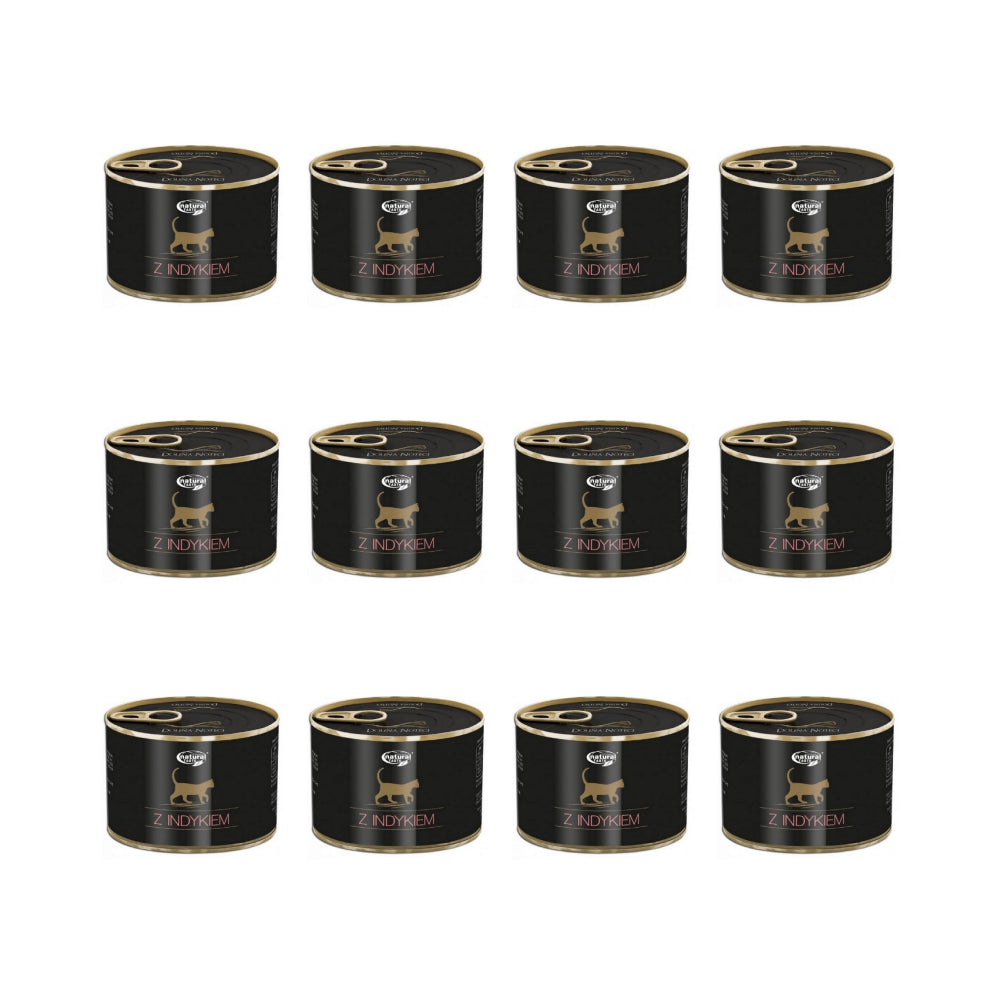 Skład: wieprzowina 21% (wątroba, serca, mięso wieprzowe), rosół, wołowina 15% (płuca, wątroba), indyk 14% (wątroba), kurczak 10% (żołądki), substancje mineralne, olej lniany 0,6%, olej z łososia 0,5%.