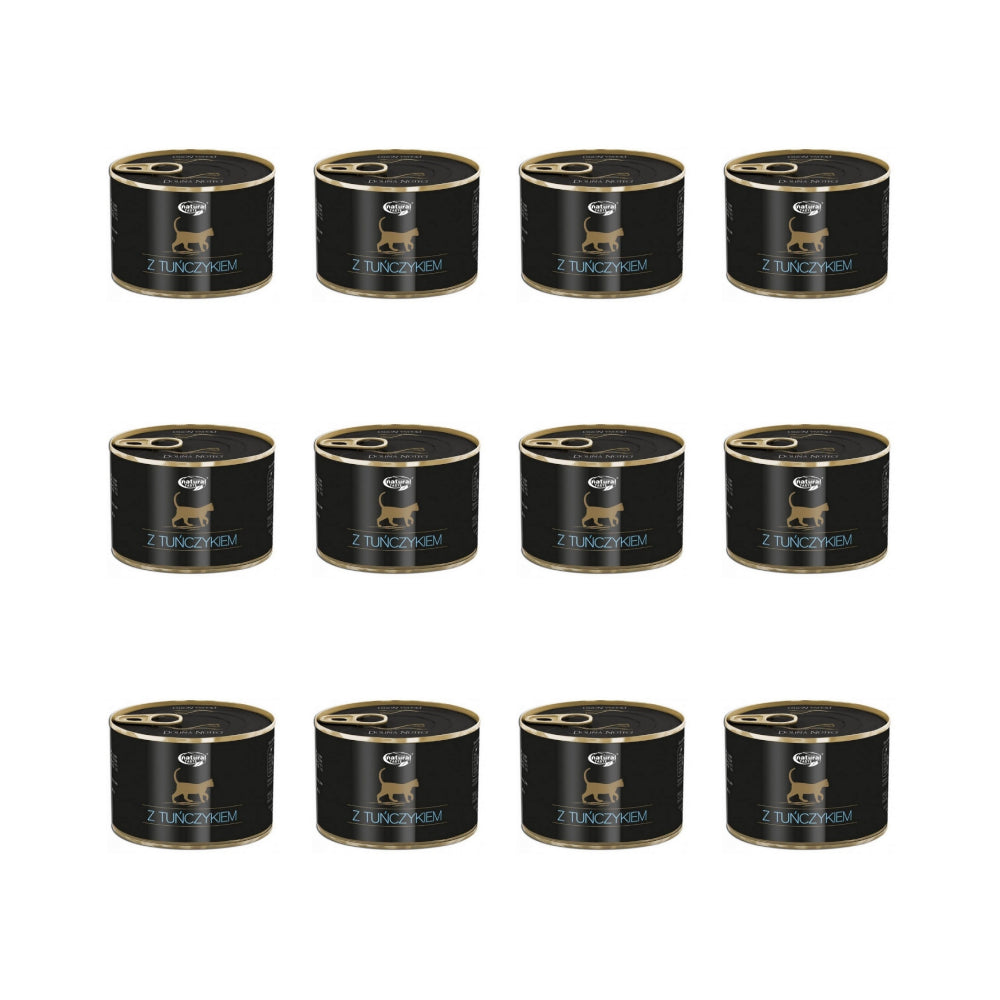 wieprzowina 23% (wątroba, serca, mięso wieprzowe), rosół, tuńczyk 14%, kurczak 13% (wątroba, żołądki), wołowina 10% (płuca, wątroba), substancje mineralne, olej lniany 0,6%, olej z łososia 0,5%.