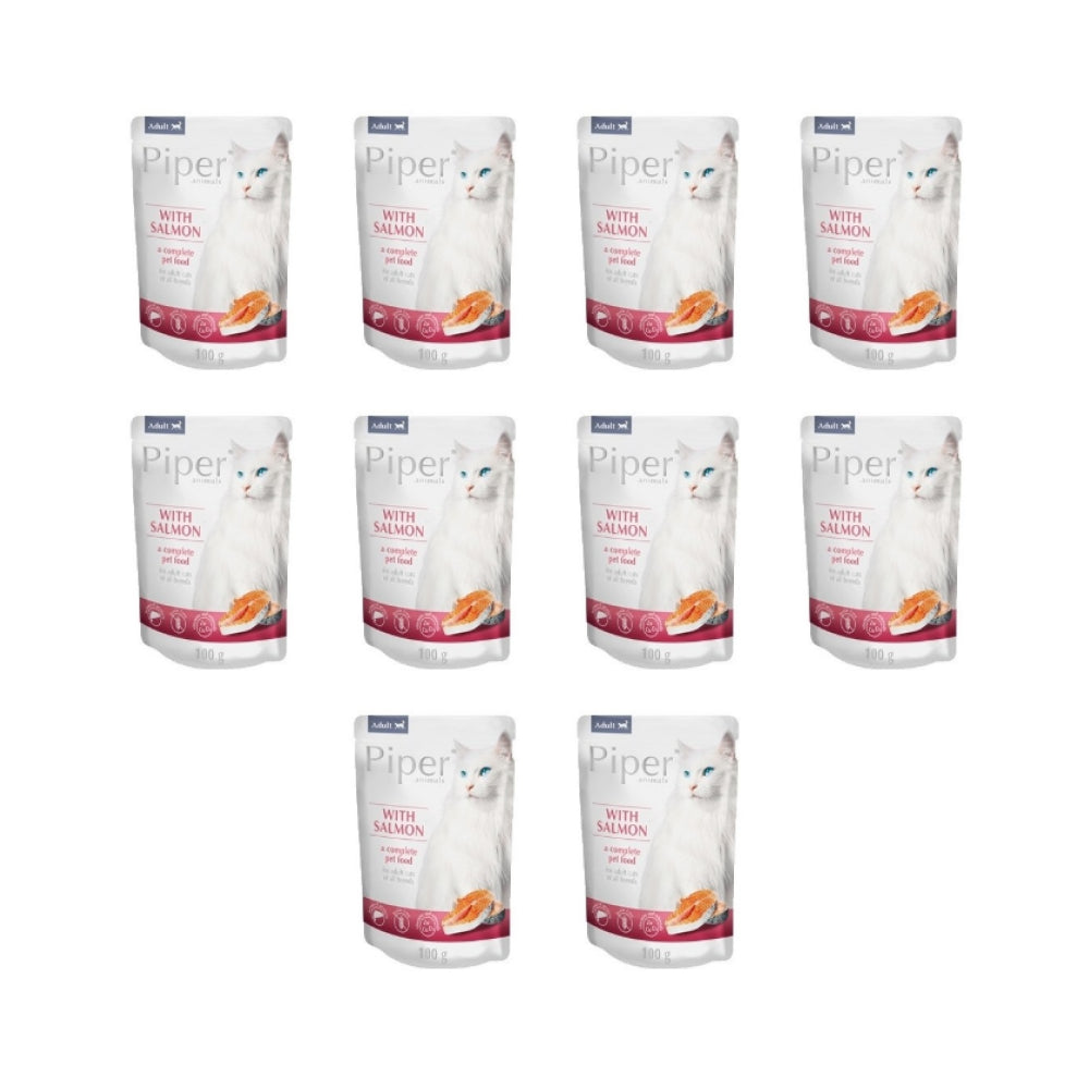 mięso i produkty pochodzenia zwierzęcego 55%, rosół, ryby i produkty rybne (10% fileta z łososia), substancje mineralne.