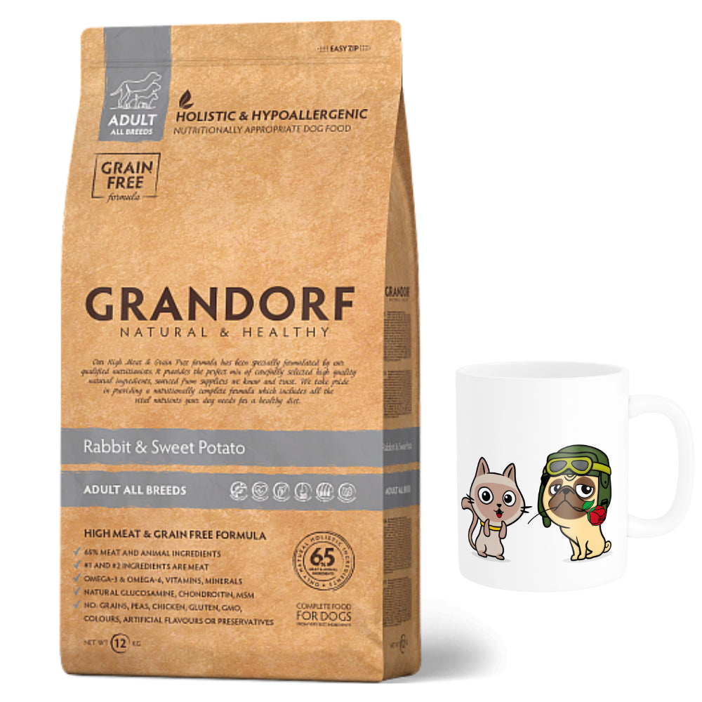 Pakiet Grandorf Rabbit & Sweet Potato Adult All Breeds Karma Dla Psów Dorosłych Wszystkich Ras 1 kg + Kubek z Twoim Pupilem GRATIS!