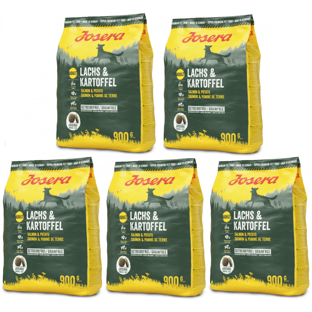 Suszone ziemniaki (51%), suszony łosoś (19%), tłuszcz drobiowy, suszona pulpa buraczana, białko ziemniaczane, mączka chleba świętojańskiego, białko rybne (hydrolizowane), chlorek sodu, cykoria w proszku, węglan wapnia, zioła, owoce.