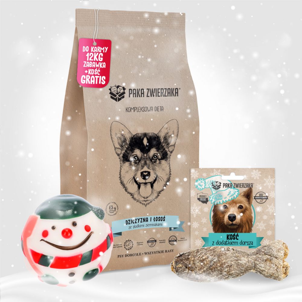 Pakiet Paka Zwierzaka Bezzbożowa Karma Dla Psa Dziczyzna Łosoś 12 kg + Piłka, Przysmak GRATIS!