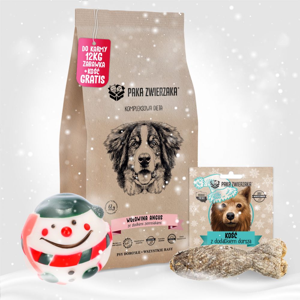 Pakiet Paka Zwierzaka Bezzbożowa Karma Dla Psa Wołowina Angus 12 kg + Piłka, Przysmak GRATIS!
