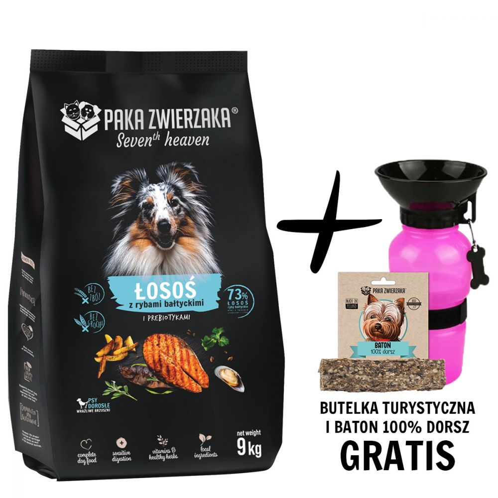 Pakiet Paka Zwierzaka Seventh Heaven Salmon&Baltic Fish Sucha Karma Dla Dorosłych Psów Łosoś Z Rybami Bałtyckimi 9 kg + Butelka Turystyczna i Baton Dorsz 100% GRATIS!