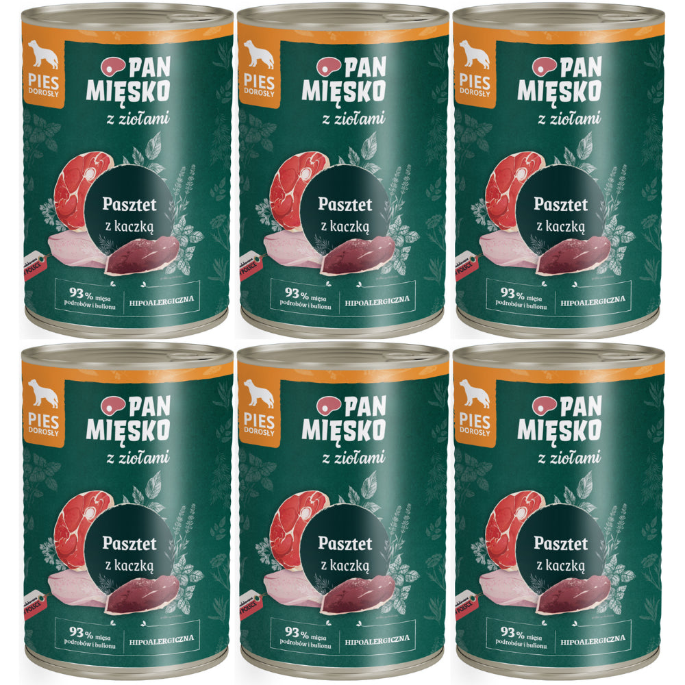 Pakiet Pan Mięsko Mokra Karma Dla Dorosłych Psów Pasztet z Ziołami i Kaczką 6 x 400 g