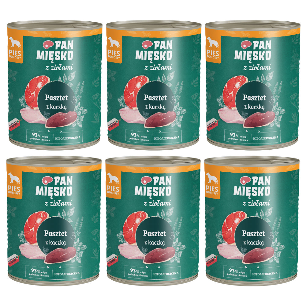 Pakiet Pan Mięsko Mokra Karma Dla Dorosłych Psów Pasztet z Ziołami i Kaczką 6 x 800 g