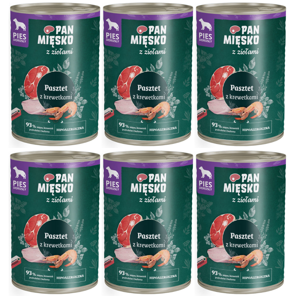 Pakiet Pan Mięsko Mokra Karma Dla Dorosłych Psów Pasztet z Ziołami i Krewetkami 6 x 400 g