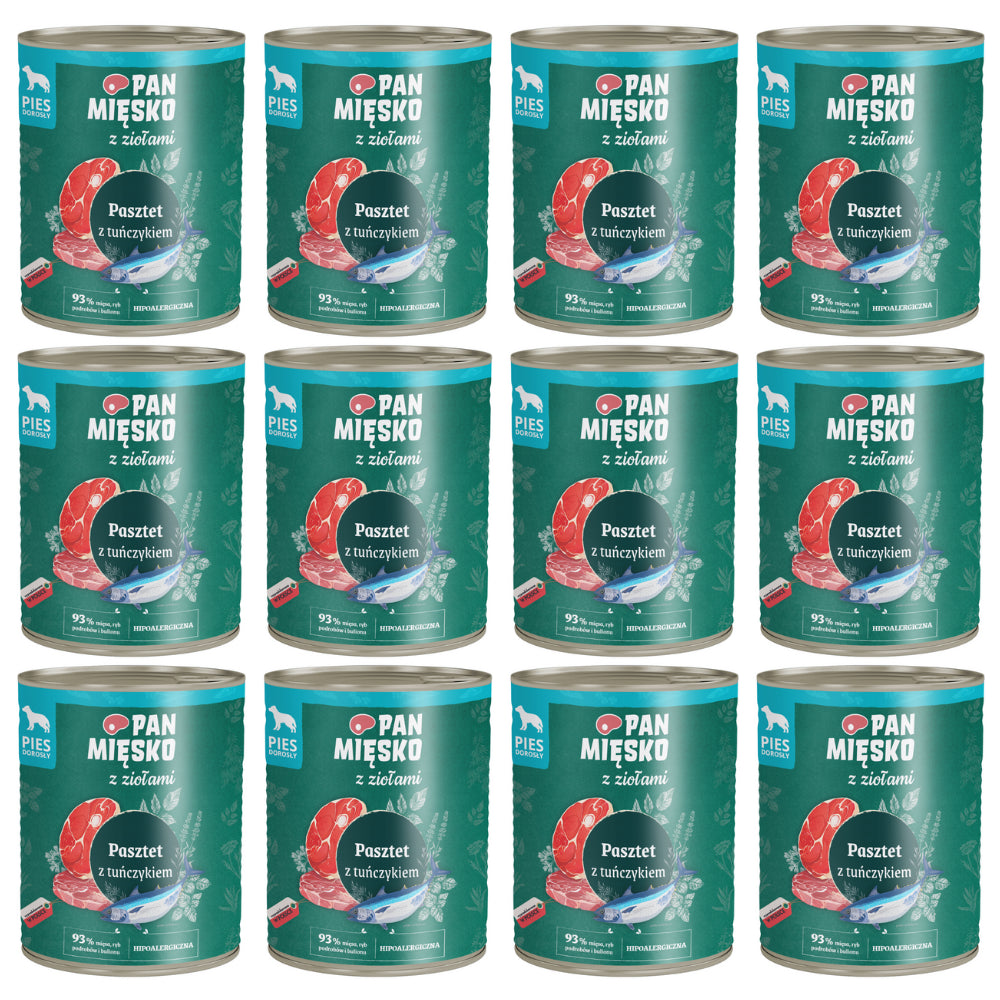 Pakiet Pan Mięsko Mokra Karma Dla Dorosłych Psów Pasztet z Ziołami i Tuńczykiem 12 x 800 g