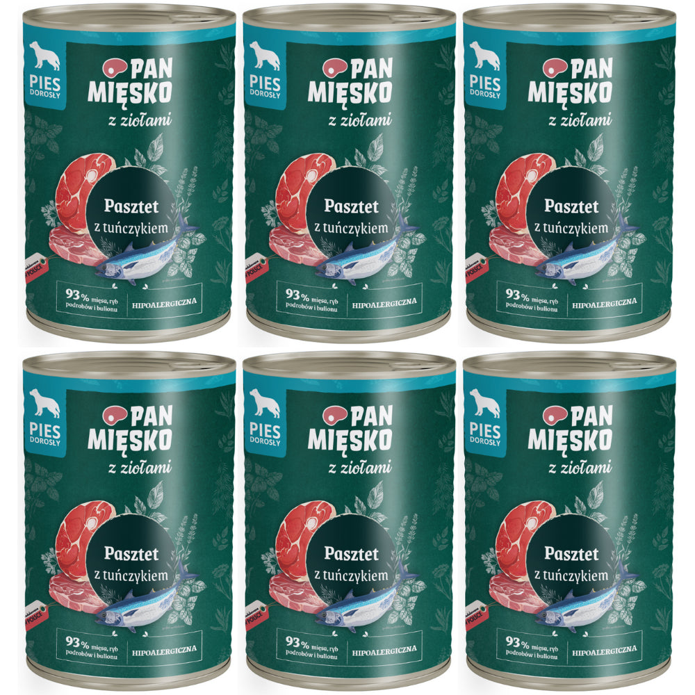 Skład: 30 % wieprzowina (18 % mięso, 4 % płuca, 3 % żołądki, 3 % wątroba, 2 % serca), 27,9 % bulion, 20 % wołowina (12 % mięso, 3 % płuca, 2 % żołądki, 2 % wątroba, 1 % serca), 15 % tuńczyk (cała ryba), 5 % ziemniaki, 1 % składniki mineralne, 0,2 % olej z łososia, 0,1 % liście mięty, 0,1 % rumianek, 0,1 % koper włoski, 0,1 % nagietek lekarski, 0,1 % korzeń goryczki żółtej, 0,1 % nasiona kminu rzymskiego, 0,1 % liście pokrzywy, 0,1 % suszone drożdże piwne, 0,1 % Jukka Mojave.