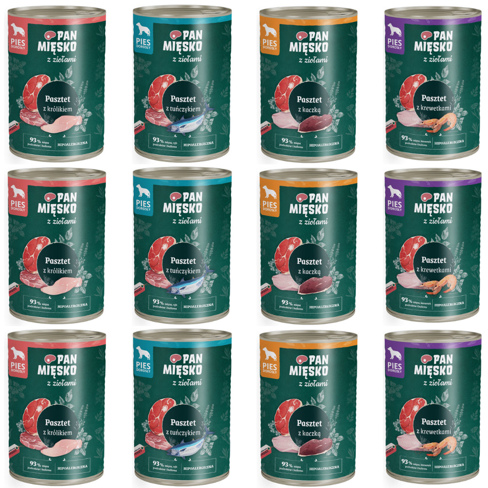 Pan Mięsko Mokra Karma Dla Dorosłych Psów Pasztet z Ziołami i Tuńczykiem 400 g