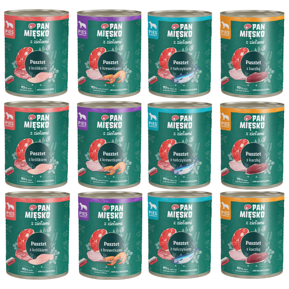 Pakiet Pan Mięsko Mokra Karma Dla Dorosłych Psów Pasztet z Ziołami Mix Smaków 12 x 800 g