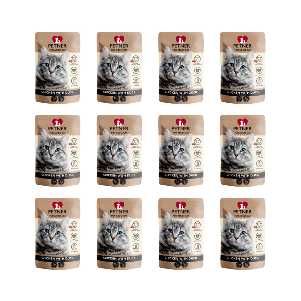 Mięso i produkty pochodzenia zwierzęcego (35% kurczaka: korpus, elementy z nogi z kurczaka, szyje; 4% kaczka), owoce (żurawina 4%), produkty pochodzenia roślinnego, substancje mineralne.