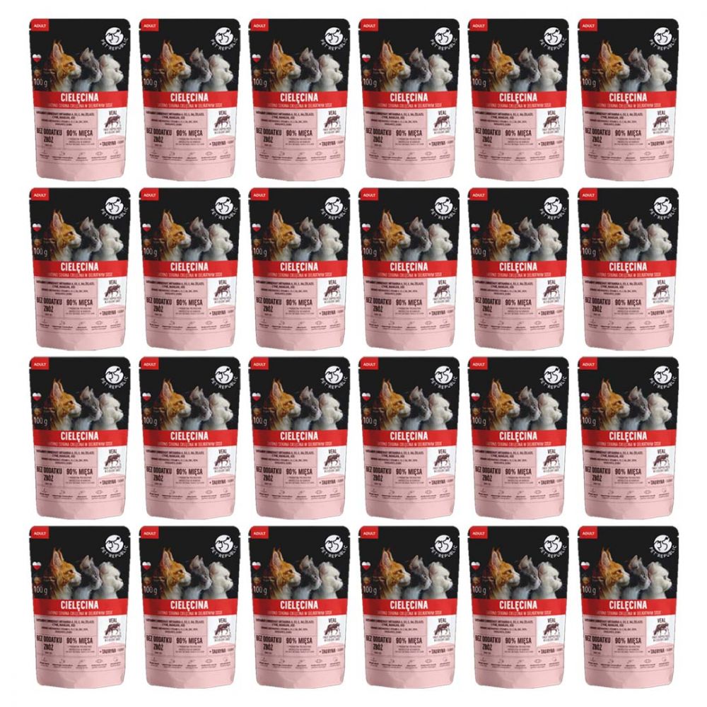 Pakiet PetRepublic Mokra Karma Dla Dorosłych Kotów Wszystkich Ras Z Kawałkami Cielęciny W Sosie 24 x 100 g