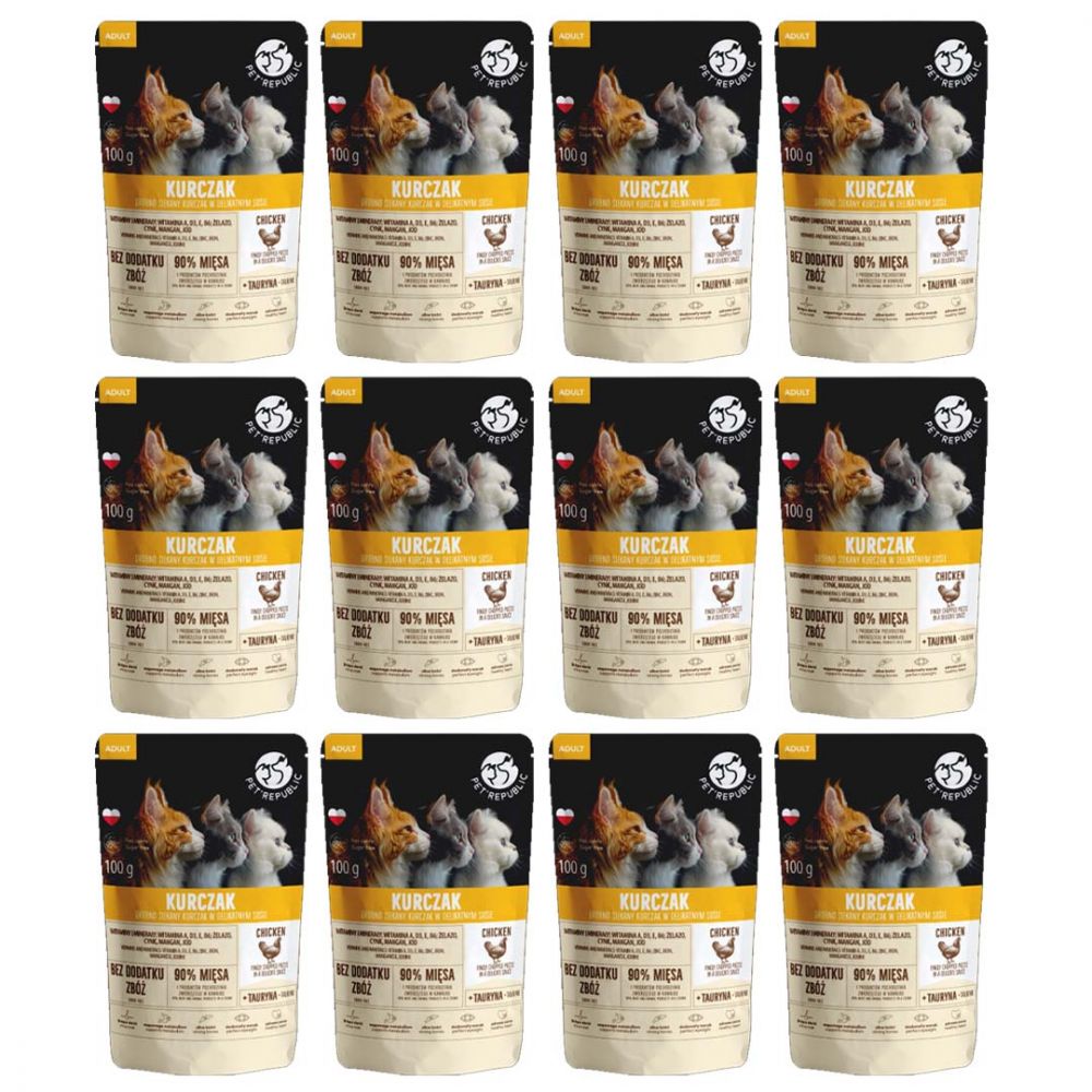 Pakiet PetRepublic Mokra Karma Dla Dorosłych Kotów Wszystkich Ras Z Kawałkami Kurczaka W Sosie 12 x 100 g