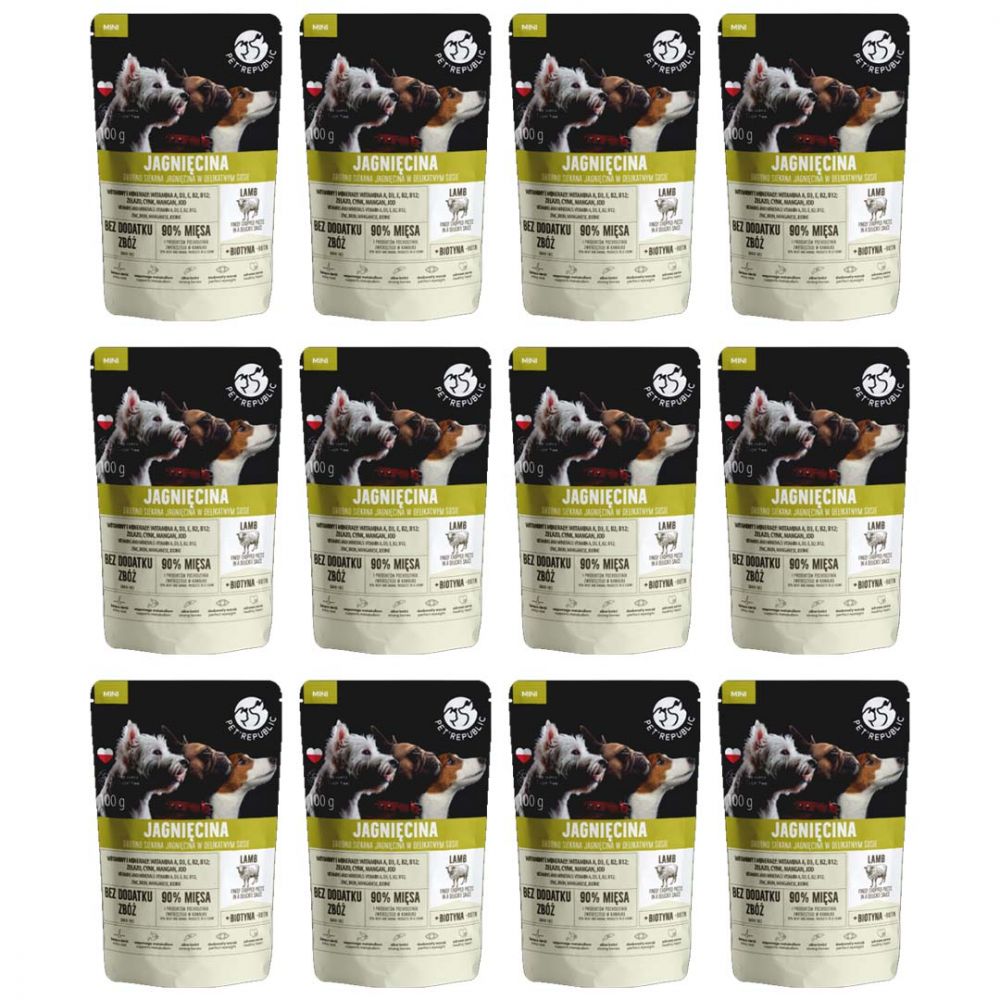 Pakiet PetRepublic Mokra Karma Dla Dorosłych Psów Małych Ras Z Drobno Siekanymi Kawałkami Jagnięciny W Sosie 12 x 100 g