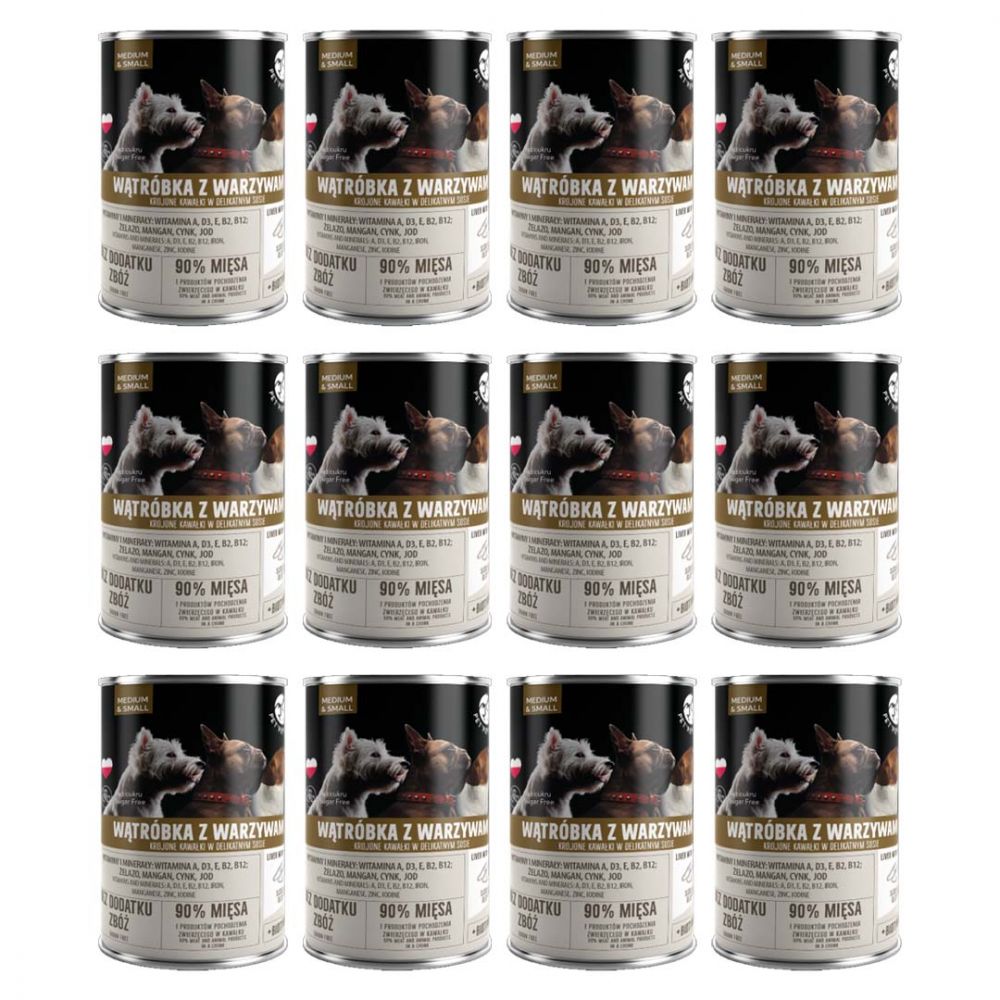 Skład: mięso i produkty pochodzenia zwierzęcego (90% mięsa i produktów pochodzenia zwierzęcego w kawałku, 4% wątróbka), warzywa (4% marchewka), produkty pochodzenia roślinnego, minerały.