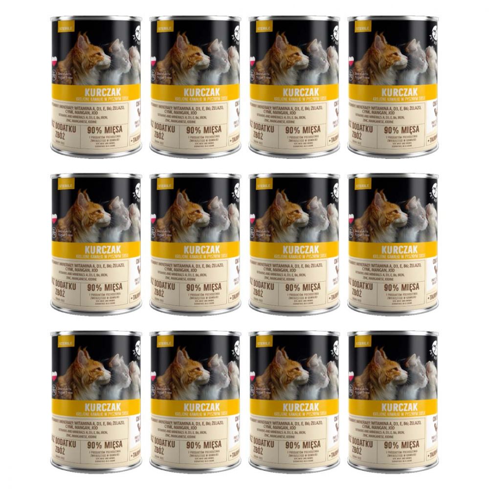 Krojone kawałki kurczaka dla kotów wszystkich ras, serwowane w delikatnym sosie stanowiącym zaproszenie do pysznego posiłku. 90% mięsa i produktów pochodzenia zwierzęcego w kawałku! BEZ DODATKU ZBÓŻ i CUKRU, z dodatkiem witamin i minerałów. Z witaminą A: dla prawidłowego funkcjonowania narządu wzroku Z witaminą D3: dla mocnych stawów i kości Z witaminą E: dla prawidłowej pracy serca, układu pokarmowego i mocnych mięśni Z witaminą B6: odpowiada za metabolizm białek, tłuszczów i węglowodanów, tworzenie czerwonych krwinek i prawidłowe działanie układu odpornościowego Z tauryną: dla prawidłowej pracy serca, mózgu, układu immunologicznego, rozrodczego i nerwowego Z żelazem: dla przeciwdziałania anemii Z manganem: dla prawidłowego rozwoju kości, ciśnienia krwi oraz działania układu nerwowego i mięśniowego Z jodem: dla prawidłowego działania tarczycy Z cynkiem: wspiera zdrowie skóry i sierści Mięso drobiowe ma niską zawartość tłuszczów, jest lekkostrawne, przez co polecane szczególnie w diecie dla zwierząt otyłych lub z tendencją do tycia. Jest bogate w witaminy: witaminy A, B1, B2, B5, PP, B6, B12 oraz składniki mineralne: cynk, fosfor, żelazo, magnez, selen, potas i siarkę. Reguluje poziom stresu, a przy tym wyróżnia się silnym działaniem antyoksydacyjnym, wzmacniającym kości i układ krwionośny.